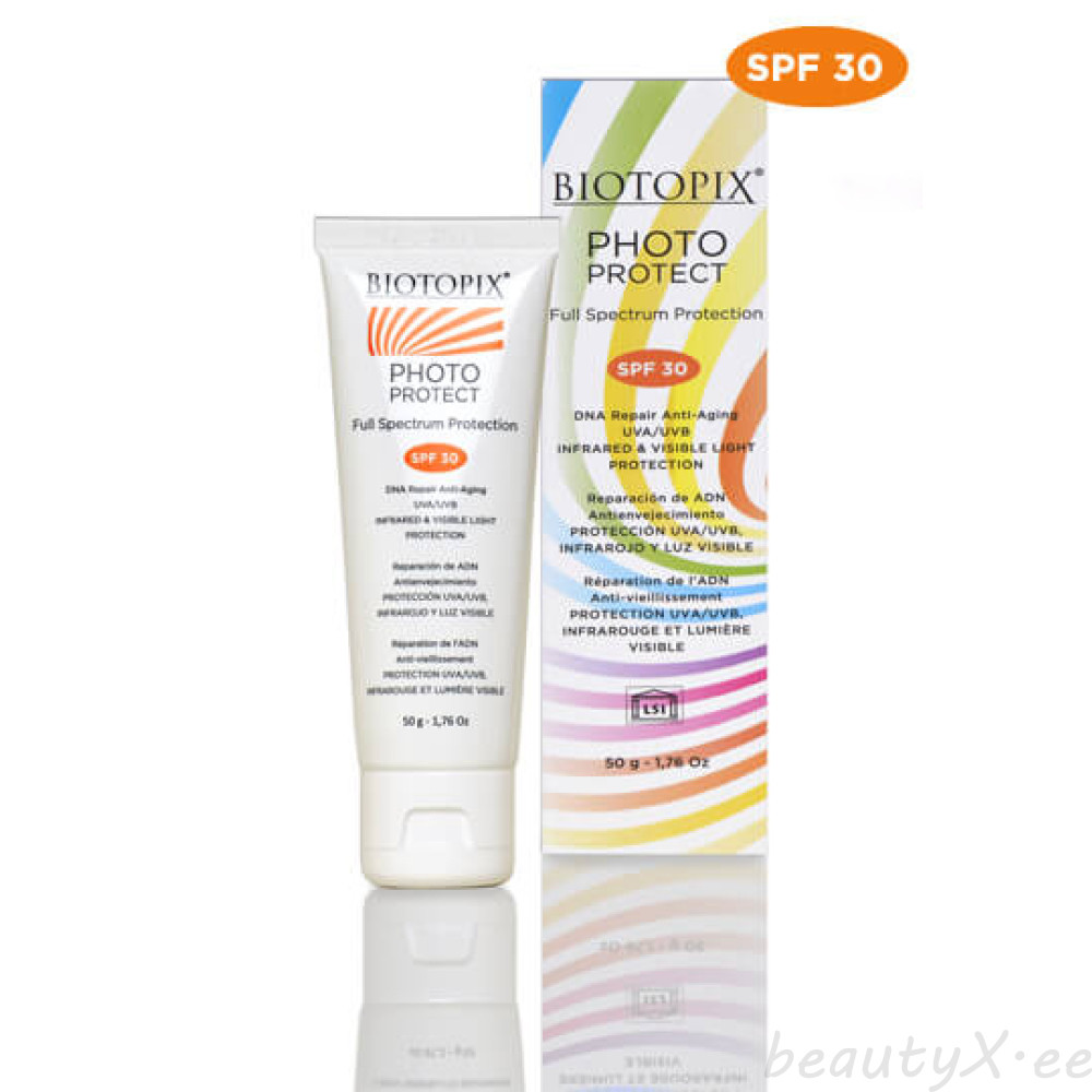 INFRAPUNA VASTU KAITSMINE - Oleme lisanud BIOTOPIX® PHOTO PROTECT®-i toodete koostisesse biotehnilise lisandi, mida kogutakse bakterist thermus thermophilus. See võitleb infrapunakiirguse tekitatud kahju vastu – vähendab põletikulisust, suurendab niisutust ning säilitab naha struktuuri, et vähendada kortsude teket.