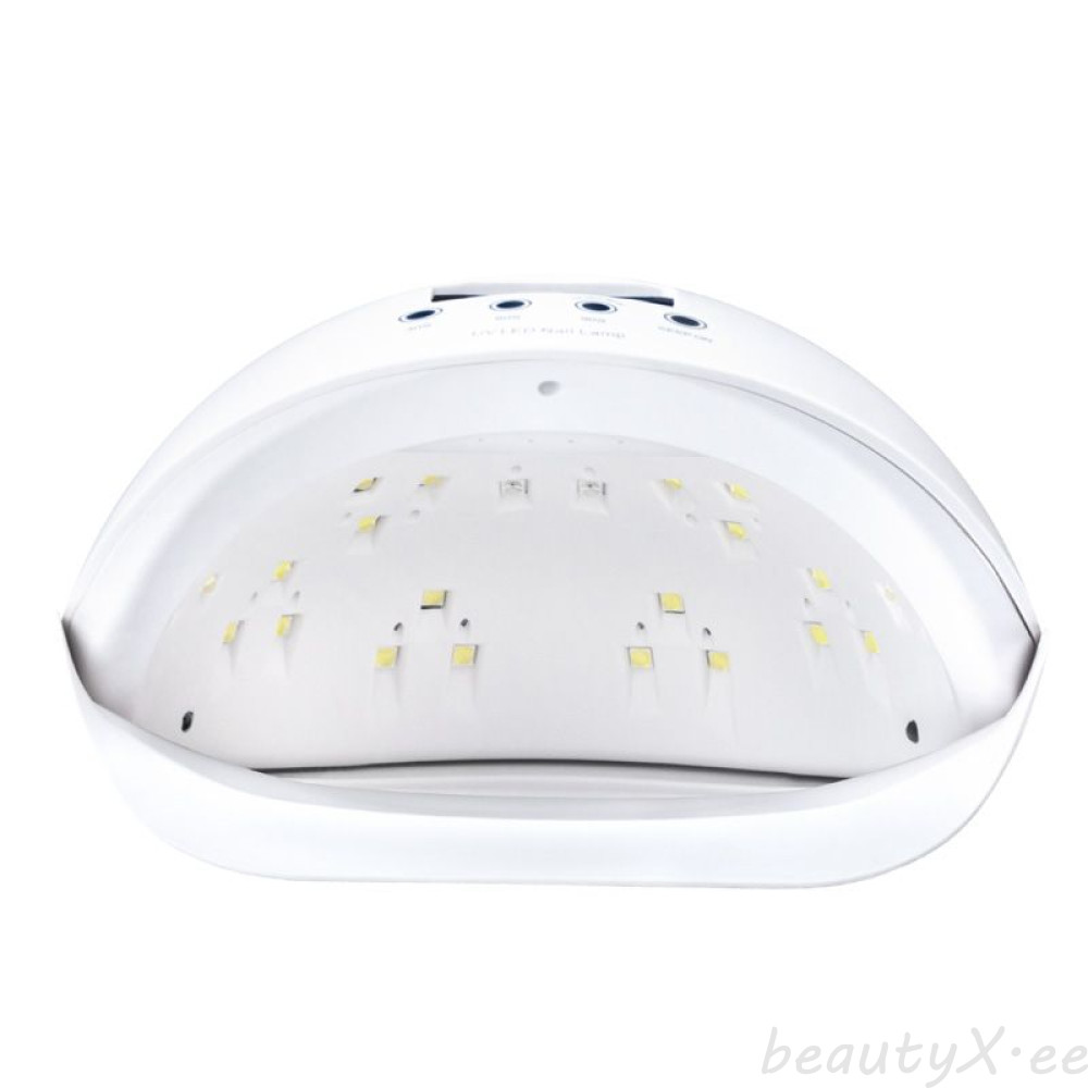 Professional UV / LED lamp of the latest generation that cures all gels, hybrid varnishes and other light-curing preparations quickly and evenly thanks to the use of dual LED technology. It emits white light that does not tire the eyes. The SUN 5SE lamp is equipped with an energy efficient LED light source with high power and two wavelengths: 360 nm and 390 nm. In addition, 28 LEDs give a total maximum power of 48W. The flashlight has a built-in motion sensor, a timer for 30, 60 and 90 seconds, and after activating the sensor, it lights up continuously for 5 minutes. 90 seconds Low Heat Mode is a mode that halves the lamp power. This reduces the burning sensation when applying the builder gel. An additional function of the device is to emit healthy infrared light with a wavelength of 660 nm. The large electronic display makes it easy to control the time, and the removable bottom allows for a pedicure.