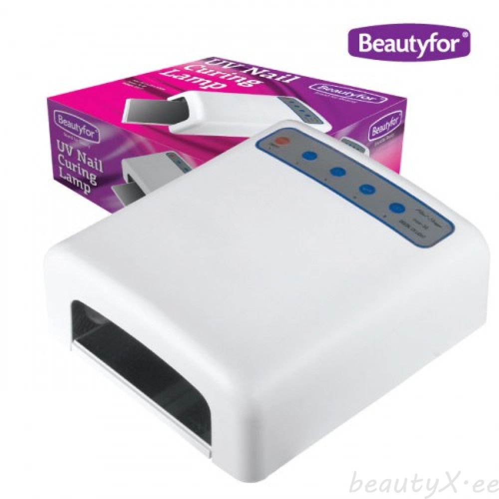 Providing options of a 30,120,180 second timed operating setting or a constantly on setting (30min), this professional use UV lamp with 4 9W bulbs features a mirrored interior to help distribute UV light evenly. The whole hand fits under the UV lamp, and the hand rest may be changed.