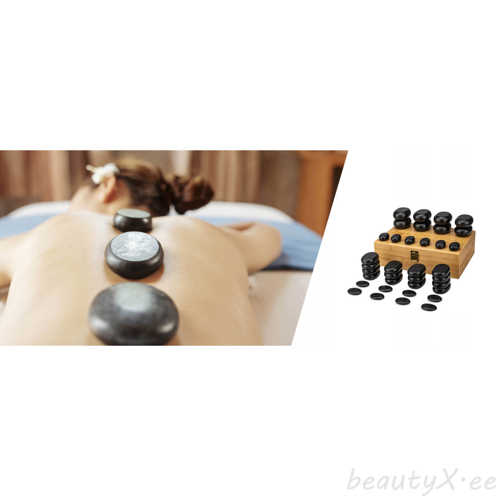 A set of 36 basalt stones housed in a sturdy natural bamboo box. Allows you to perform a full body massage, including head, face and foot massage. The variety of stones available in the set allows you to massage all parts of the body. The largest stones are designed to massage the torso, the smaller ones are placed between the fingers and toes and on the face.