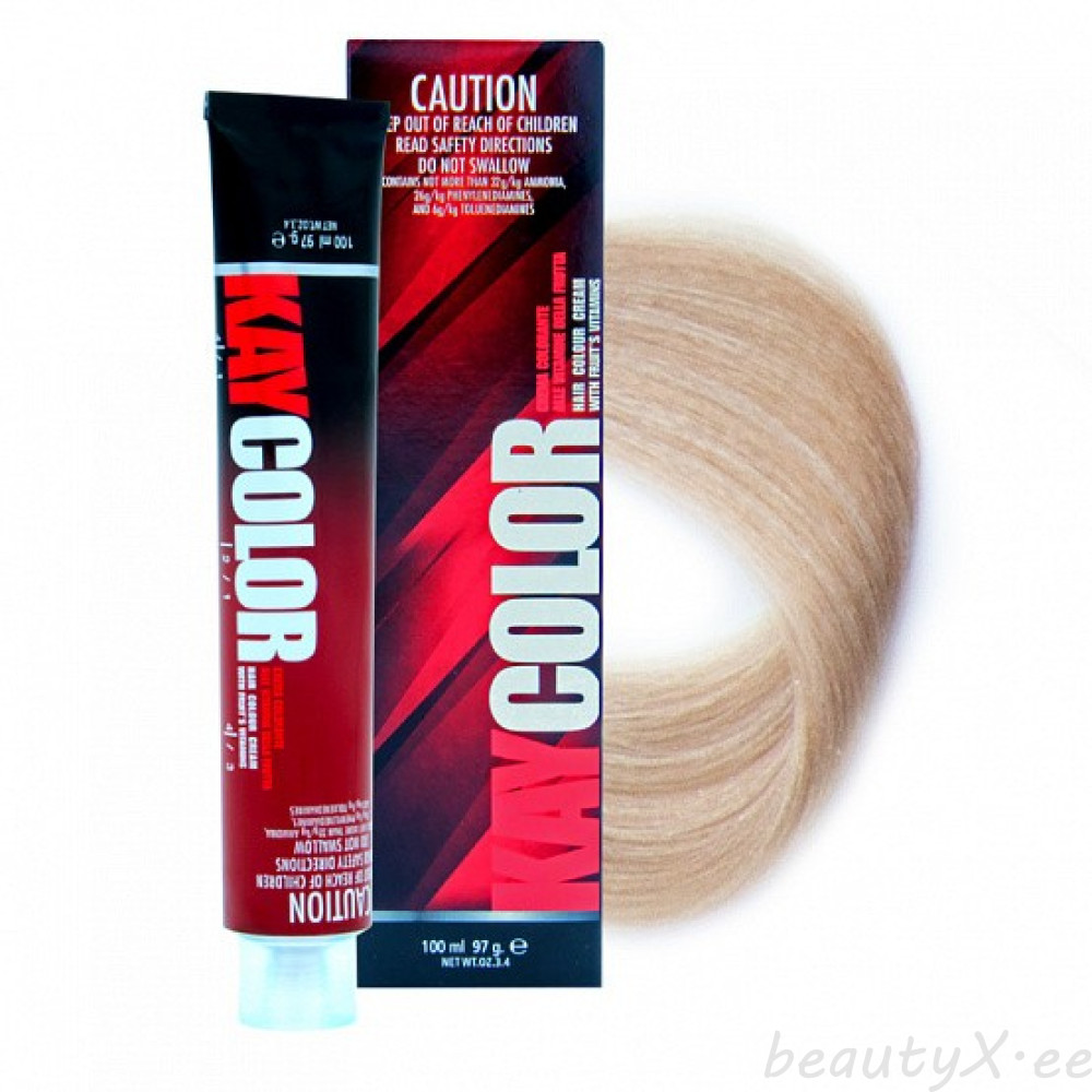 Determine your hair tone level and choose the desired color. Mix the color with the appropriate Kay Color developer in the desired ratio. Apply to dry, unwashed hair. Leave on for the required time, then rinse thoroughly with warm water.