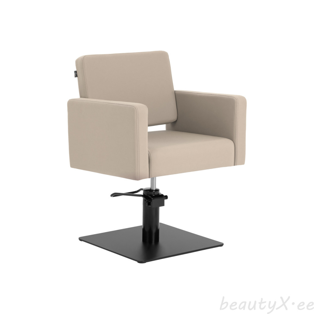 Закругленные линии кресла создают легкую и современную эстетику , а устойчивое квадратное основание матово-черного цвета подчеркивает его стильный вид. Мягкая на ощупь синтетическая кожа серых и бежевых оттенков обеспечивает комфорт даже во время длительных процедур, а также гарантирует долговечность, влагостойкость и легкость в уходе . Кресло дополняет как современные, так и классические интерьеры, подчеркивая профессиональный имидж салона .