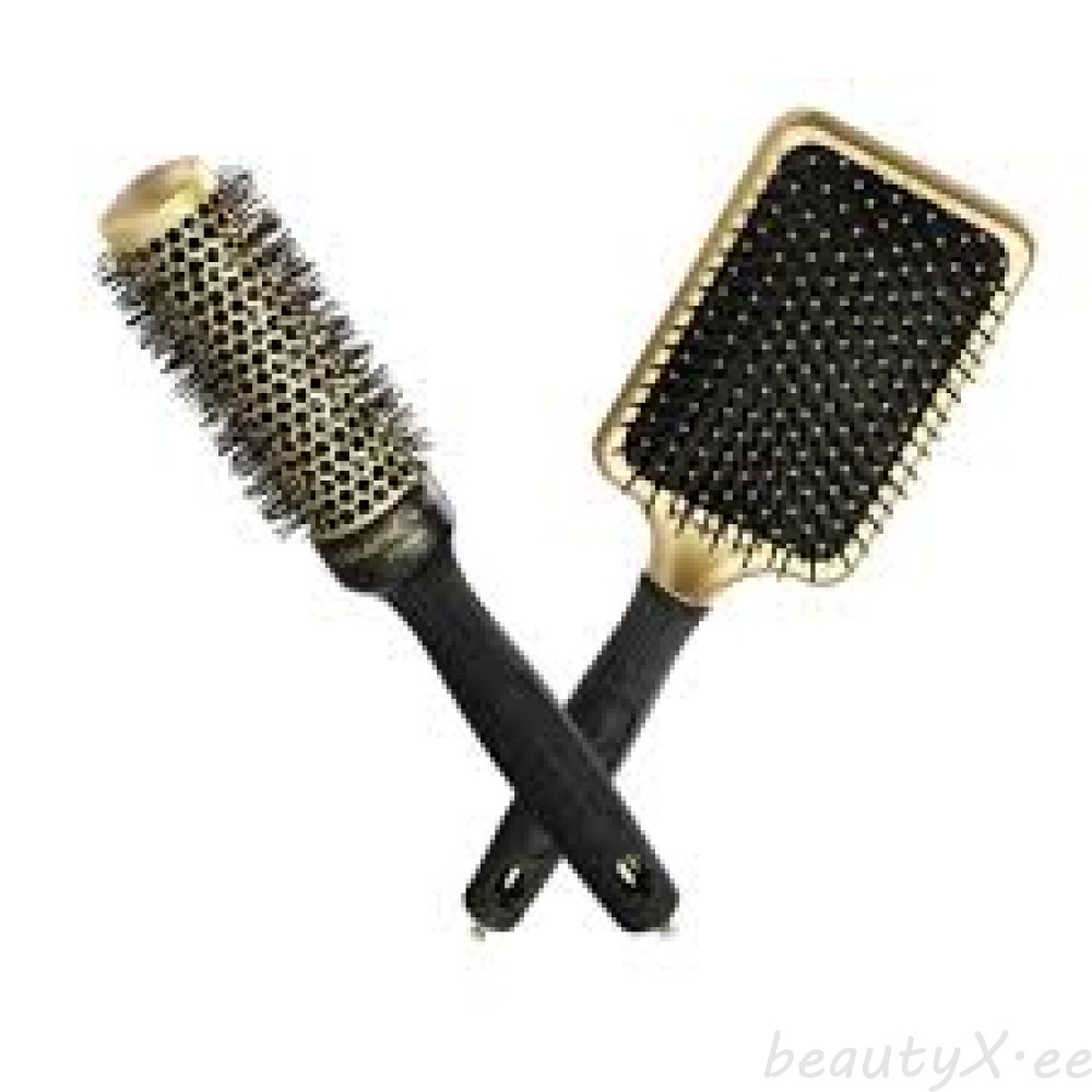 В комплекте две самые продаваемые щетки Ceramic+ion в стильном черно-золотом дизайне. Керамическая поверхность обеспечивает более быстрый нагрев щетки и её длительное сохранение тепла. Турмалиновые ионные щетинки восстанавливают баланс волос и придают им блеск. Обе щетки имеют эргономичный дизайн и удобную бесшовную ручку.