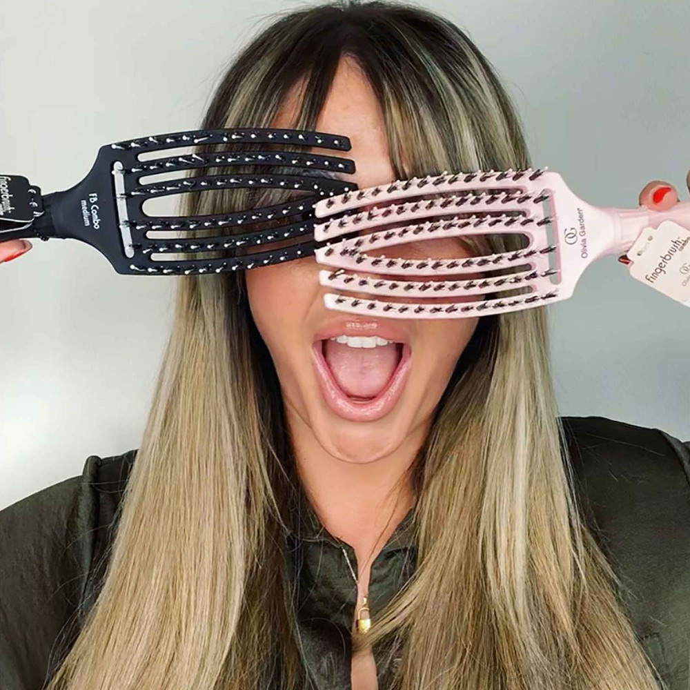 Высококачественные профессиональные салонные щетки-расчески Fingerbrush обладают уникальной изогнутой формой, плотно прилегающей к коже головы, и вентилируемой головкой для красивых, естественных результатов укладки. Специальная смесь нейлона и 100% щетины кабана делает их идеальными для укладки, расчесывания и коррекции прически.