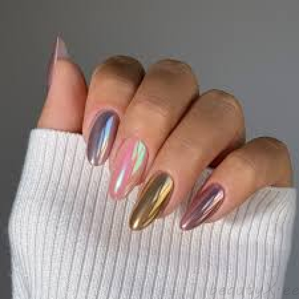 Пудра лучше всего смотрится на тёмных базовых цветах — она подчёркивает металлический эффект.