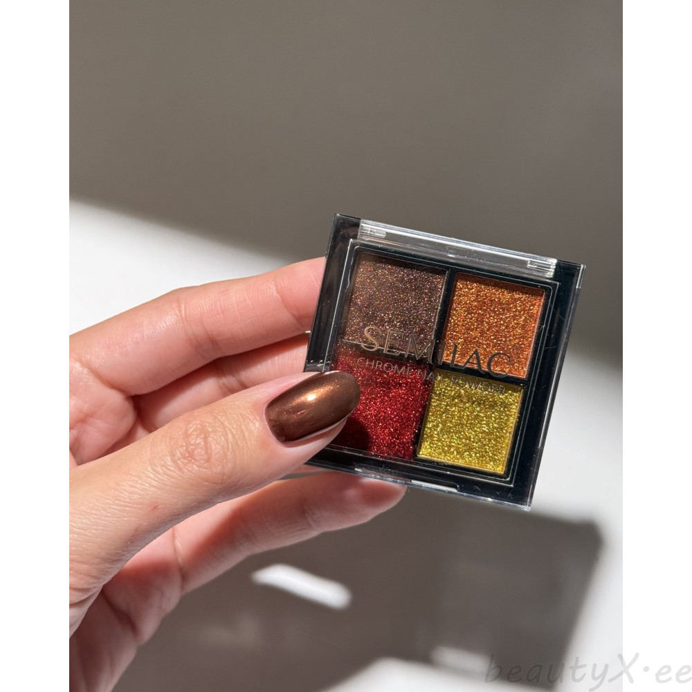 Четыре насыщенных мерцающих оттенка — коричневый, красный, золотой и оранжевый — упакованы в удобный компактный формат, готовый к использованию без лишних хлопот и просыпаний.