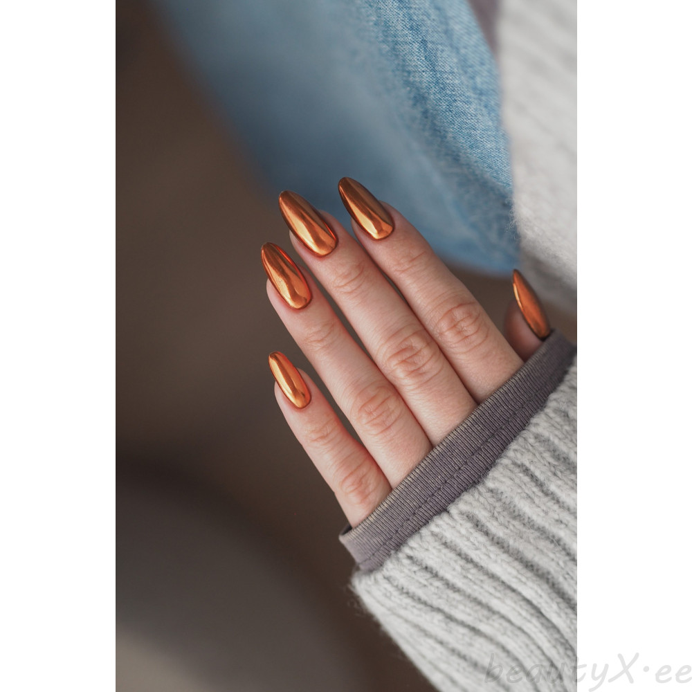 Пудра лучше всего смотрится на тёмных базовых цветах — она подчёркивает металлический эффект.