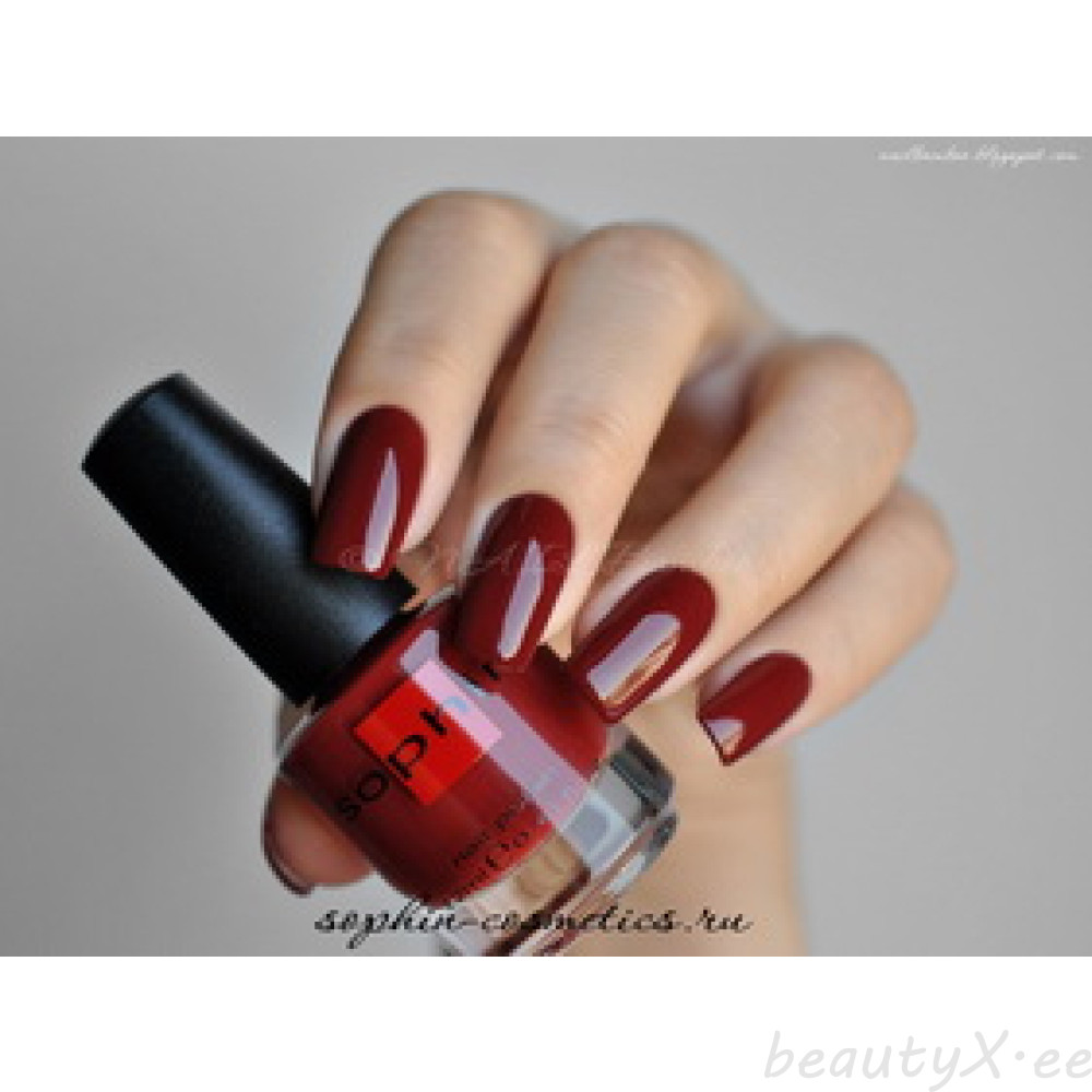 Нанести лак на подготовленный ноготь в 1-2 слоя, дать высохнуть несколько минут. При желании, используйте верхнее покрытие или сушку Sophin для лучшего блеска и стойкости маникюра.